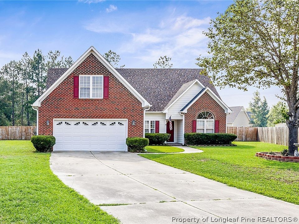 Located in Quail Hollow West, this well cared for, one owner home is situated on a large .46-acre cul-de-sac lot. This home features 3 bedrooms, 2 baths, large bonus room, formal dining room, great room with vaulted ceiling and fireplace, spacious kitchen with breakfast nook, breakfast bar, and bay-window, separate laundry/mud room. Desirable open floor plan and split bedroom plan as well. Large master suite with vaulted ceiling and walk in closet. Master bath features dual sink vanity, jetted tub, and separate shower. Both guest rooms are appropriately sized with one offering vaulted ceiling and Palladian style window. Carpet and laminate flooring approximately 2 years old. Roof approximately 3 years old. Fenced back yard, deck, and paver patio. Located off Wayside Road which offers convenient access to Ft Bragg via Chicken Road Gate.