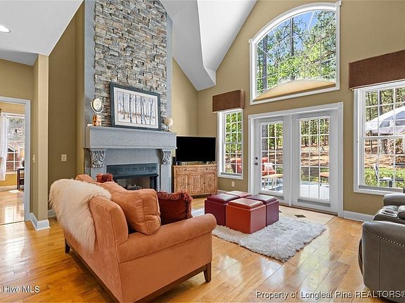Classic Pinehurst Home nestled in the pines of Claredon Gardens. Hardwood floors flow throughout light filled living area with 18 foot vaulted ceiling and fireplace. French doors open onto dream sun room and onto large deck overlooking tranquil and private yard. Kitchen complete with granite counters, breakfast bar and custom details. Primary bedroom on main living area with walk in closet and ensuite with dual sinks and shower, plus access Office is tucked off the foyer with double glass doors. Upstairs an open loft area leads to 2 additional bedrooms with shared bathroom. 2 bonus rooms on either side of home, With extra storage. Laundry room and side entry garage. Mature landscaping adds to park like setting.