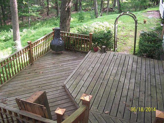 Split Level Style Living--solidly built brick & vinyl four bedrooms home. Pride of ownership throughout. Upgrades & extra features: Hardwood floors through out, dining area with slider doors leading to screened porch , brick propane corner fireplace in living. All rooms are clean & spacious w/hardwood floors. Kitchen has plenty of cabinets. Individual Electric thermostats,ceiling fans. Triple tier decking for entertaining, one acre of land, paved driveway and two-car garage. Close to Route 80, Rte 33 & all major shopping. Low taxes and no dues!!! Bring your check book.
