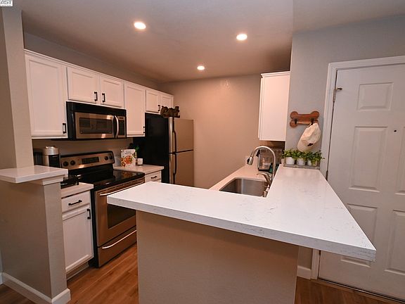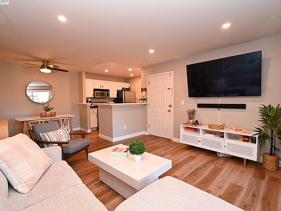 Beautifully updated condo in highly desirable neighborhood near The City shopping mall and 680 freeway. The property includes recessed lighting, updated bathroom with farm-look wood vanity/stone countertop, updated light fixtures, faucet, toilet and tile floor. The kitchen has been updated with quartz countertops and recessed lighting. The additional flooring throughout is vinyl wood-look plank flooring. The open floorplan allows for ease of entertaining as it flows from dining area to living room and out to the patio.