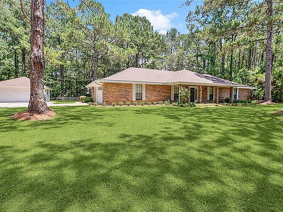 AMMENTIES GALORE HERE.. Bring your boat, RV/Camper and all your toys to this rare find in Mandeville. Don't miss this Prime Location and Beautifully treed property offering you the best of both worlds right off of Sharp Rd. This well maintained home sits on almost an acre measuring 180'x200' featuring 3 bedrooms 2.5 baths, a 2 car attached garage and a large covered patio on the rear of the home. The property is an Entertainers Delight with a large covered pavilion including a 3rd bath with a steam shower and a very nice hot tub on the deck. The property also includes an additional garage/storage building for all your extra storage needs, including a 30 amp RV plug. Check out the beautifully updated kitchen and baths with light and bright cabinets and granite counters. Lots of light shines into a large den/living room with a cathedral ceiling and wood beams. Master bedroom is large with wood flooring, a decorative barn door leading into master bath and a large walk-in closet. Some fresh paint and paint touch up have been made throughout the home. Also note: Tammany Trace is less than a mile down Sharp RD. Don't miss out!! Call for your appointment today...