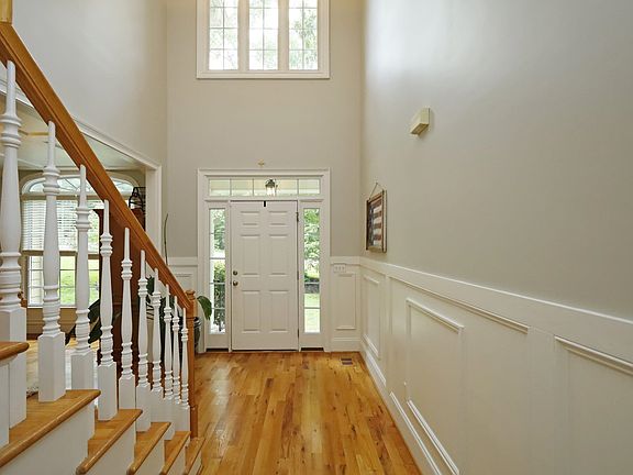 Situated on a beautifully wooded 3/4 acre lot in a quiet, established neighborhood with no HOA, this Former Parade of Homes winner features open-concept living/kitchen areas with two gas fireplaces, a 1st-floor owner's suite with jetted tub, and a beautiful great-room adorned with cathedral ceilings, built-in shelving/cabinets, and two-story windows allowing an abundance of natural sunlight. Crown molding throughout adds charm along with a coffered ceiling, wainscoting, and inlaid wood flooring in the dining room. The second floor possesses three additional bedrooms- two adjoined with a Jack and Jill bathroom and a private full bathroom in the third. The backyard is fenced-in with a custom wood playset, an inground saltwater pool lined with banana trees, a mature fruit-bearing fig tree, and a storage shed to convey. The walk-in crawl space contains a concrete floor and workbench. The entire home is freshly painted with a brand new downstairs HVAC, and a new roof in 2020. Additionally, a separate generator outlet is hardwired to the home, and a laundry/utility room equipped with cabinets and a sink.