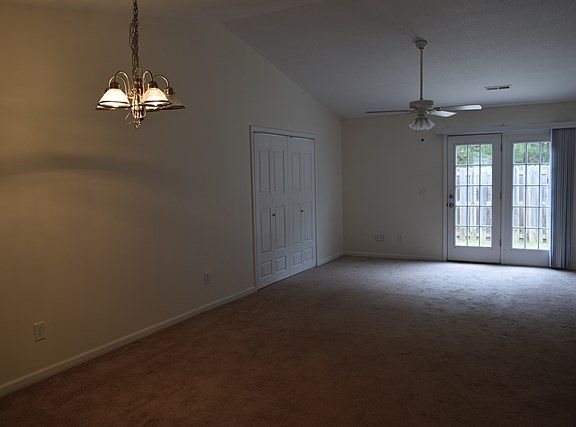 Rare opportunity....this just listed end unit located in Karlie Hill is move in ready and waiting to WELCOME YOU HOME! Step inside and see all this unit has to offer: Vaulted ceilings, open floor plan, spacious kitchen with white cabinets, stainless appliances, large breakfast bar,dining area, living room with french doors, sunroom(or 3rd bedroom), master suite and additional bedroom/bath perfect for children or guest. This unit also boasts ample outdoor space with fenced in patio area, single car garage and is located on back side of neighborhood for added privacy. Call today to learn how to call this unit HOME!