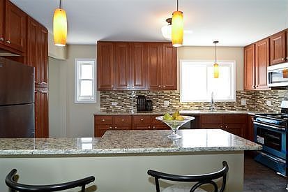 Professionally rehabbed 3 bed/2bath brick home. This beautiful home features an open floor plan with great sunlight. Gourmet kitchen with granite counters, stainless steel appliances, 42 inch cab. Refinished hardwood floors, pottery barn colors. Finished full basement for great entertaining. FHA buyers welcome