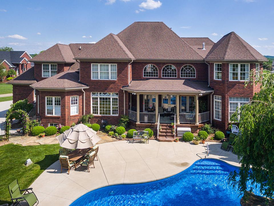 Absolutely breathtaking luxury home for sale in Stoney Ridge Estates, Shepherdsville KY 40165 featuring 5 bedrooms, 4 full bathrooms plus a half bath, and a 3 car garage. The extras this home has to offer are unbelievable! The oversized great room had cofferred ceilings, hard wood floors, and large palladium windows. The master bedroom is more like a suite with bay windows, whirlpool tub, stand alone shower, and a marble master bath. Movie room, crafting room and space for a piano. The kitchen offers granite countertops, imported ceramic tile, beautiful oak cabinets and a travertin back splash. Home also has 2 Geothermal HVAC systems. The inground pool with a diving rock is the perfect place to relax and entertain. Call listing agents to show!! See utilities in documents for all upgrades.