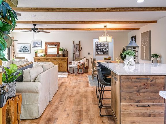 - Vaulted Ceiling(s), Ceiling Fan(s), Drywall, Primary on Main, Walk-In Closet(s), Solid Surface Counters, Kitchen Island
