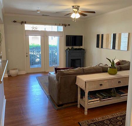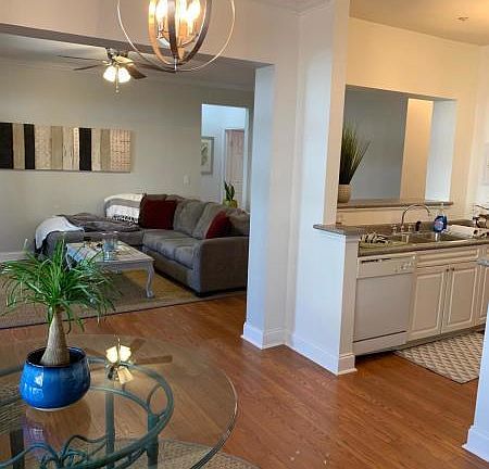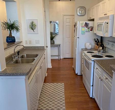 FRESHLY PAINTED INTERIOR***ALL NEW LIGHT FIXTURES***SEPARATE LAUNDRY ROOM***LAMINATE WOOD FLOORS THROUGHOUT*** NO CARPET***Kitchen has pantry + Breakfast Area**Master Bath has two separate vanities, walk-in shower AND garden tub + spacious walk-in closet***Huge screened porch (20 Ft long)**Amenities include saltwater pool , game room (with pool table), 24 hr fitness areas,grills, gazebo with tables and putting greens**