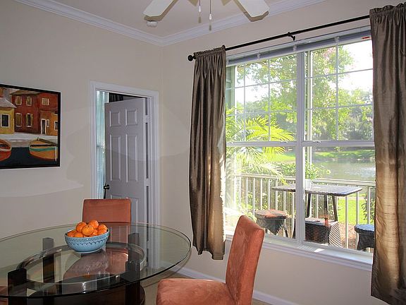 Live, work, play in this beautiful, water front, two bedroom, two bath with bonus room and large screen porch condo. Located on luxurious Daniel Island on the Wando River. Just steps from miles of walking trails. Walk to the dock and enjoy a water taxi to down town Charleston. Perfect place to launch Kayaks, paddle boards, go fishing or relax and take in the views. New Yacht Club and water front restaurant, coming soon. Great floor plan with one bedroom on each side of the unit and a study (bonus room). 9 foot ceilings thru out and crown molding in main living area. Quiet building, conveniently located on 1st floor facing pond with fabulous bridge views. Close to reserved parking spot. Spacious primary bedroom has a large L shaped walk in closet. Bathroom with 2 vanities and garden tub. Second bedroom has a generous sized walk in closet and is adjacent to bathroom with standing shower and linen closet. The study is perfect for a home office, play room, art or music studio. Nice Kitchen with ample cabinet space. Dining room, convenient laundry room with washer and dryer. Utility closet outside on the patio is great for basic storage needs. HOA includes water, sewer, trash, landscaping, structural insurance and maintenance as well as these amenities; salt water pool, hot tub, fitness center, clubhouse, gazebos with grills and picnic areas. Easy walk to all of downtown Daniel Island restaurants, shops, tennis center and Volvo Stadium music venue. Wonderful spot for sunrise runs with your dog, dolphin sightings and long bike rides.