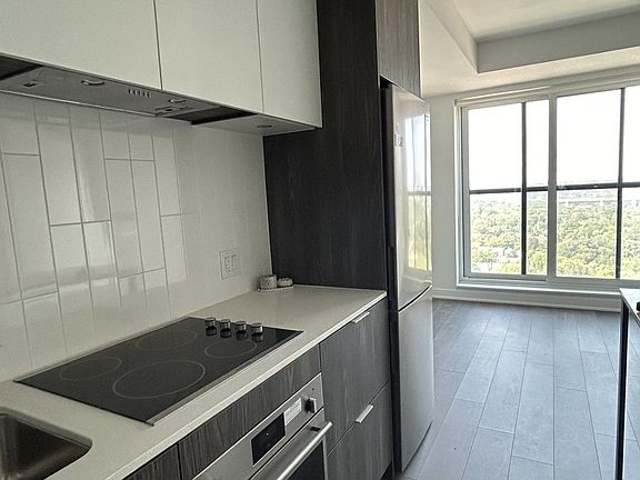 A year old new one bedroom built by Daniel Homes is available for rent. S/S Appliances, hardwood floor through out with big bay windows for an amazing North view. All the amenities include rooftop garden, workshop for art and hobbies, caterer's kitchen, party room, lounge, workspace, large children's play place, arcade and games room, indoor and outdoor gym and 24hour concierge. TTC, school, university, shopping ,metro/subway, Don Valley, Gardiner just a min away.