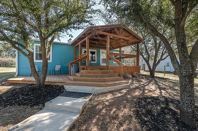 Ready to move in a 3 bedroom 2 bath house over 1200 SQFT well maintained and taken care of in a peaceful gated community. Home located on a third of an acre at Mountain River estates on the Brazos river provides a community center, park with playground and river beach. The perfect place for peaceful living, river swimming, floating, fishing or just relaxing on the large covered patio built from Green Oaks hotel reclaimed wood! House has storm windows, water softener and reverse osmosis filtration This is a must see property.