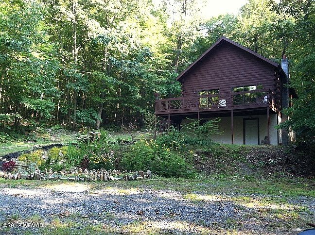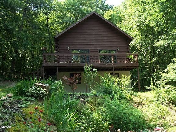 Lovely, secluded and wooded setting home on over 4 acres bordering state game lands. This log home offers the chance for nature-lovers to enjoy their surroundings. The upstairs loft includes a balcony overlooking the woods. You cannot see this house from the road, it is completely secluded! Close to Bald Eagle State Park and the Dam.