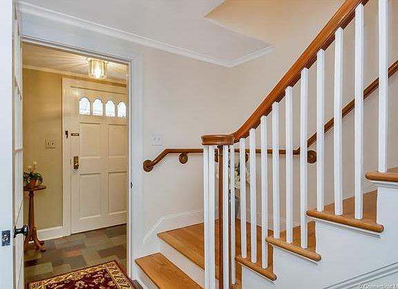 Beautifully maintained 4 bedroom Colonial within walking distance of Morley School, West Hartford Center and Blue Back Square. Easy access to highways, bus line and recreation facilities. New windows, central air, newer gas heat and hot water heater, private patio with stone wall and gardens overlooking deep yard. Eat in kitchen, living room with fireplace, formal dining room, and three season porch. Updated baths, additional 200 sq ft in lower level paneled family room with fireplace, walkup attic with cedar closet. Move right in to this meticulously cared for home in a desirable neighborhood. Taxes and assessment reflect tax bill as of 7/1/17.