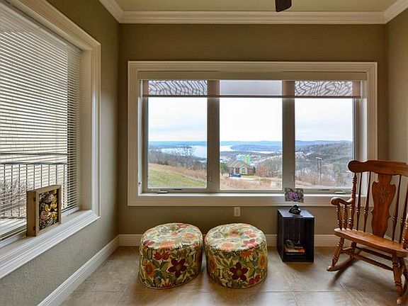 Beautiful views of Table Rock Lake and Ozark Mountain sunsets from this UPSCALE and virtually walk-in (elevator access) 2 Bed 2 Bath one level Condo in Gated Community, within minutes to Branson and all the attractions. Beautiful details, finishes and upgrades of a custom built executive home- crown molding, granite counters, stone surround electric fireplace, upgraded flooring including beautiful hardwoods and over-sized tile. The floor plan is open and has a great feel upon entry. Don't miss experiencing the awesome sun room sitting area for your morning coffee or afternoon beverage. Truly a Place to Call Home! NO nightly rental allowed. Amenities include swimming pool, exercise room in a beautiful clubhouse. It's time to live the Good Life!!