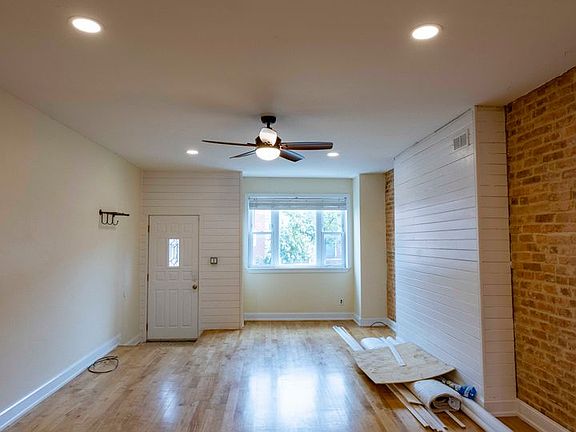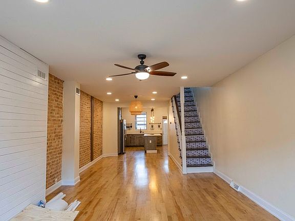 SPACIOUS 1800 SQ. FT. ROWHOME WITH TONS OF POTENTIAL AND PARKING! Open floor plan, spacious living room w/ dining area, large kitchen w/ space for a table, 2nd level w/ 2 large bedrooms, 1 full bath, and hallway space that's perfect for an office area, large finished basement w/ rec room, full bath, and laundry area, rear fenced patio and gated parking pad.