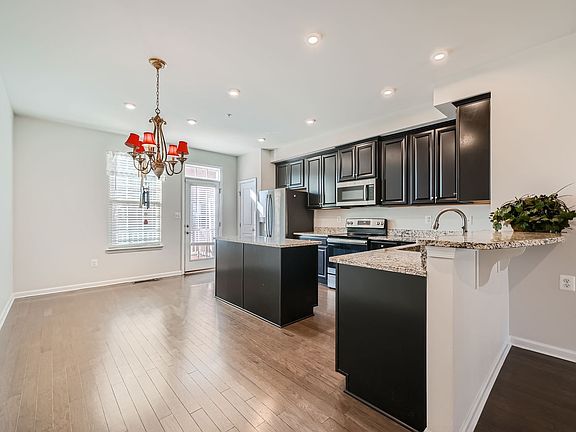 Stunning townhome in quiet and private Oldham Crossing. The main level entry foyer is greeted with an open living space and half bathroom. The sun soaked main level is ideal for entertaining with open sight lines from the living room to kitchen. Freshly painted, 9' ceilings, 42" cabinets, stainless steel appliances, breakfast bar, and huge center island. Upstairs offers a massive primary bedroom, spacious closets, en-suite primary bath with dual vanity sinks and dual headed shower. Through the hall you'll find the stackable laundry, spacious bedroom complete with a closet and full bathroom. The oversized garage has tons of extra storage space and the full size driveway gives you a second parking spot. The community offers a dog park, tot lot, and is conveniently located near commuter routes 895,95,695 with a short drive to Yard 56, Canton Crossing, and Fells Point.