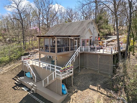 Welcome to this beautifully designed Cape Cod Lake retreat nestled in the serene surroundings of Bull Shoals. With 1645 sq feet of cozy nautical-inspired living space, this fully furnished 3-bedroom, 2 bath home offers the perfect blend of comfort and lake home charm. Step inside to a soaring 12-foot ceiling living room, where a cozy electric fireplace sets the perfect ambiance for relaxing. Outdoor living is a dream with expansive decks, including a large screened-in porch where you can soak in breathtaking lake views and witness some of the most amazing sunsets. The unfinished basement is plumbed for a half bath. There is a walkout that leads to an attached workshop idea for hobbies or extra storage. Sitting on .60 acre lot, this home is uniquely bordered on 2 sides by Corps of Engineers. Whether you are looking for a private getaway or a turnkey VRBO opportunity, this charming lake home is ready to welcome its new owner. Comes fully furnished.