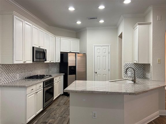 This impeccably kept home has all desired upgrades and design choices. Recently replaced double pain energy efficient windows and recent AC unit will keep your energy bills low. Home has high ceilings and large windows. Upgrades include wood looking tile throughout the house, silestone countertops and Grohe faucets, frameless shower in primary bedroom, garage with epoxy floor and cabinetry. The split floor plan allows for a primary suite situated far from the secondary bedrooms. A beautiful back patio and landscaping provide a setting that would delight anyone who visits. Home is located in a quiet neighborhood with easy and quick access to the freeway making it a desirable location for commuters. All properties around are well kept. There is a wide range of dining, shopping and entertainment options within a short distance. There are countless parks, pools, tennis courts and miles of trails in the area. Refrigerator, washer and dryer included. Pets on case-by-case bases. Owner-agent.