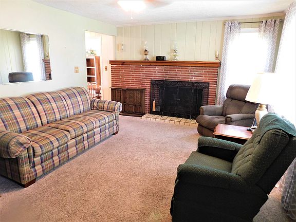 Adorable bungalow on Westside of Kokomo close to shopping, hospital, downtown and the walking trail is behind this home. This 2 bedroom, 1 bath home is just waiting on a new owner. Step inside from the open porch to the cozy living room with a wood burning fireplace. The applianced kitchen offers crown molding, tiled backsplash, bar seating, extra storage and opens to a step-down dining room with tiled floor and family room with tiled floor (or could be a sunroom, hobby room, game room, etc). The utility area, that includes a washer/dryer that remain is just off of the kitchen. Bathroom has been updated and there are 2 newer storm doors. Nice patio on back of home to enjoy the 2 city lots that the home sits on and offers a 12 x 16 storage shed with concrete flooring and ramp. This home will not last long!