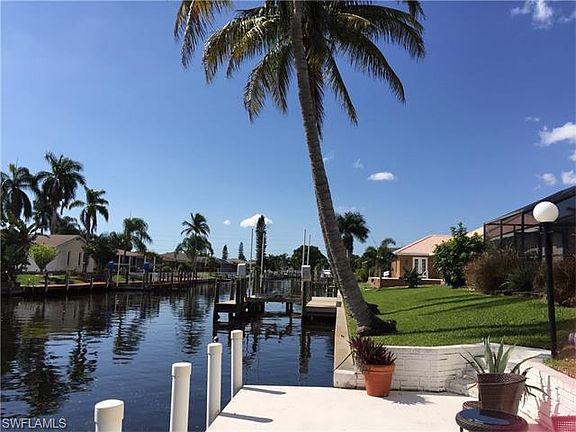 Completely updated Gulf Access 3/2/2 Southern Exposure POOL home on wide canal. Large corner lot. End of street. Quick Gulf Access. Super location off SantaBarbara and close to Cape Parkway. Split floor plan. 2 docks w/ captain walk. 7,000# boat lift. Electric Heated Salt Water Pool. Large Lanai. Tropical setting with fruit trees. Fully hurricane protected with NEW accordion shutters. NEW hurricane rated garage door. NEW AC and duct 2012, NEW electrical panel 2013, NEW Flat roof and side 2012, Blown-in insulation, Kitchen and Master Bath remodeled 2014. Granite! Entire house TILED. New screens. Outdoor kitchen. An absolute Must see home!