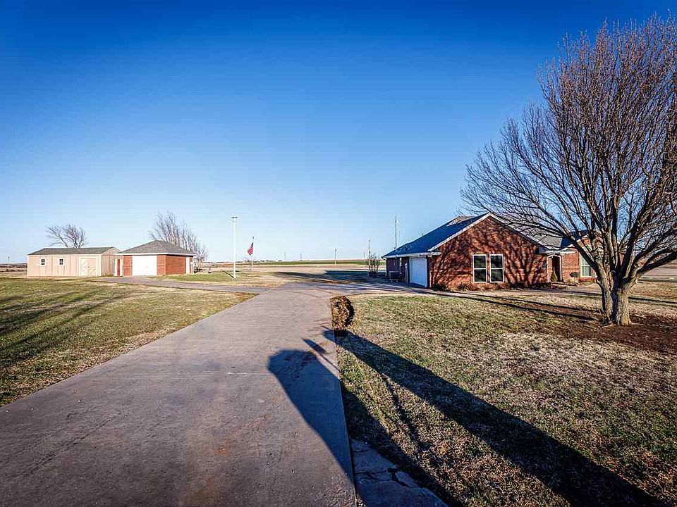 Come see this little slice of heaven on apprx 4 acres on Lawton's far east side in Rangers Rachette! This brick home features 3 bedrooms, 2 bathrooms, a 2 car garage, a detached one car garage and a storage shed. Nice open living floor plan with gorgeous plantation shutters throughout the home! The kitchen is spacious with a breakfast bar and nice cabinetry. The main bedroom is spacious and has a high tray ceiling and the ensuite features a double sink vanity, jetted tub, separate shower, vanity table and 2 nice closets! The other bedrooms feature tray ceilings and great closets with shelving. The back patio is covered, has a ceiling fan and the TV is mounted. Nice detached one garage garage and storage shed for all your projects! The yard features a wireless perimeter fence and nice mature landscaping. Must See!