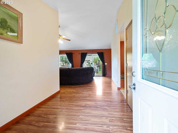 Single-level living on huge .21 acre lot. Situated on quiet dead-end street, you can hear the neighboring Santiam River running through the serene environment. 4 bed/2 bath home, with private master suite set away. Living room is open, with vaulted ceilings, laminate flooring. Large kitchen with tons of cabinets, shares the space with dining area. Huge fenced yard with above ground pool with decking, hot tub, raised gardens, firepit. Plenty of space for play and entertaining!