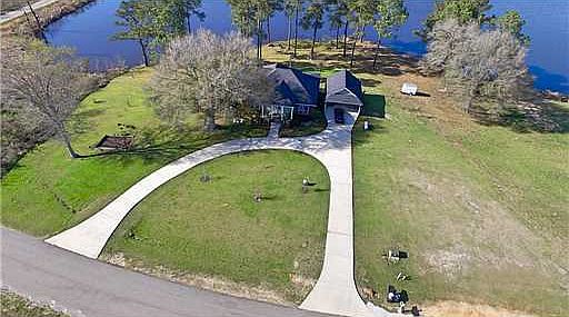 Lakefront energy efficient home home with a large kitchen that is lined with window over looking the lake. Gas fireplace in living room, wood burning fireplace in dining area. formal dining room, office with built in cabinets, tankless water heater, high ceilings. Swim, fish, and boat at home.