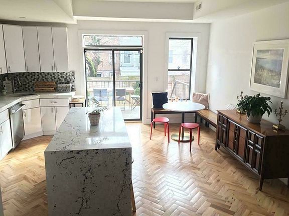 One Month Free! Welcome to 130 Schaefer St, Residence 2, a bright 3 bedroom/2.5 bathroom gorgeous brick townhouse apartment on a quiet street in Bushwick. This duplex has 1,600 SF of interior space with a private deck and shaded backyard. The parlor level features open concept living with herringbone hardwood floors and plenty of space for a living room, dining area, half bathroom and breakfast nook with a large chefs kitchen equipped with Viking dishwasher, professional microwave, large gallery refrigerator/freezer and gas range. Upstairs you will find 3 bedrooms, 2 full baths and laundry room. The large master bedroom has en suite bathroom with rain shower and walk-in closet. The apartment is located in trendy Bushwick, with lots of new restaurants, coffee shops, art galleries and breweries. Enjoy close proximity to Irving Square Park and a short walk to L, J, Z subway stations.