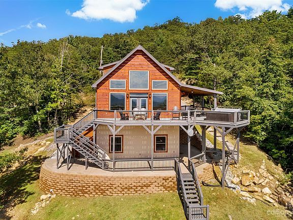 Escape to your own private mountain oasis in Marion, NC. This magnificent three-story cabin offers breathtaking mountain views & a serene setting. The expansive wrap-around decking is perfect for entertaining or simply enjoying the surroundings. With five bedrooms & three and a half bathrooms, there is plenty of space for family and guests. The main level features a spacious living & dining area, a well-appointed kitchen, and an owner's suite. Upstairs, you'll find two additional bedrooms & a full-sized bathroom. The lower level boasts a den/game area, another full-sized bth & two more bedrooms. Each level of the home has its own temperature control for ultimate comfort. This property also has a rich VRBO rental history, making it an excellent investment opportunity. Sold fully furnished & turn-key, this mountain retreat is ready for you to call it home. Don't miss out on this incredible opportunity! Located 10 miles from Linville Falls and approx 30 miles from Boone and Blowing Rock!