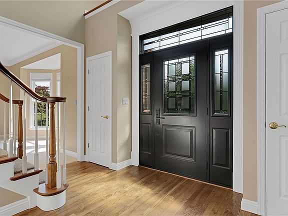 Welcome to this stunning custom-built brick provincial home. Featuring a 2 story entry, 2 coat closets, and rich newly refinished hardwood floors flowing through the foyer, powder room, hallway leading into the kitchen w/eat-in area, dining room as well as steps leading upstairs. The home offers a private office, elegant dining room, freshly updated new white kitchen cabinetry with island plus eat-in-area. Formal living room boasts a bay window and family room has a two sided fireplace-the sun room is on the back side facing the level private rear yard. Freshly painted neutral entryway, office, family room, living room, sun room, kitchen, and 1st floor laundry room. On the second floor the Primary bath was freshly painted and expansive ceilings allow one to enjoy a private space in primary bedroom. Bedroom with en suite as well as two bedrooms sharing a jack-n-jill bath. Finished walk-out basement has full bath, gameroom as well as flex room. Abundance of storage space throughout.
