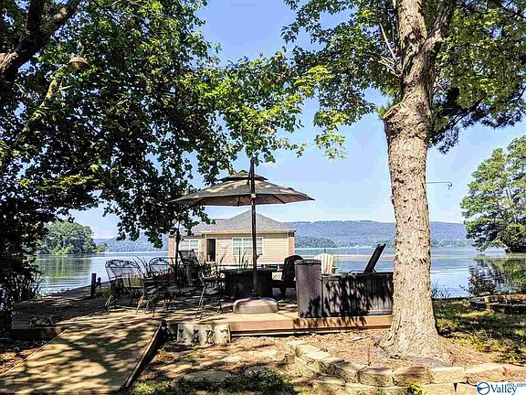 WATERFRONT in Langston on Lake Guntersville! over 100 ft of shoreline&SEAWALL! Lg level lot with good water! Gorgeous Brick 4BED( 4th sm bed now used as office) Beautiful Custom Boathouse featuring Boatslip&Seadoo drive up Ramp! Boathouse includes enclosed heated/cooled REC area! Trex Decking used on Waterside patio deck and Pier! Outside stereo sound, Gorgeous Landscaping, & Irrig system! Home features 9FT Ceilings,Granite, hardwoods,tile,& theatre surround in sitting room overlooking the Lake! Property features asphalt drive with Iron Gate! Add'l Parcel available adjacent to property over 2 ac & 3car garage/workshop heated/cooled,plumbed