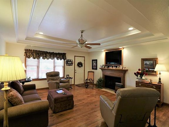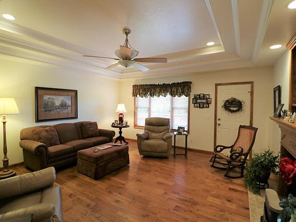 Home is in a great location just 5 minutes from town. It has a lovely country view, trey ceilings, recessed lights,gorgeous hardwood floors, gas log fireplace, covered front porch and a large rear deck to with great view.