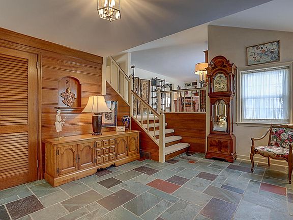 Meticulously cared for Mid-Century home ideal for entertaining*current owner since 1972*spectacular 1-acre level lot beautifully landscaped on non-thru loop street*Honduran Mahogany paneling foyer-FR*LR-FR fireplaces*massive tiled sunroom w/vaulted ceiling-skylights opens to mahogany deck w/blt-in benches-water feature-bridge-basket weave brick patio-grille*replacement windows*thruout*roof 2001-heat pumps 2015-h20 htr 2015-well pump/tank 2014*