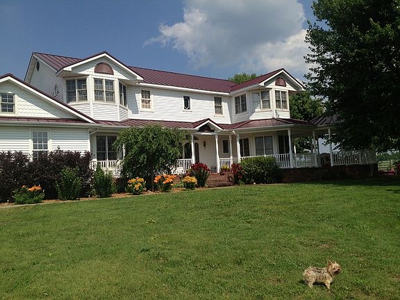 This beautiful home is a 5 Bedroom 3 bathroom located in a quiet, country setting. Just 3 miles from Walmart and North Jackson Elementary. This spacious house was Amish built, Standing Seam metal roof, reinforced 10"x9' Basement (1,931.75 sq.ft.)Walls with Storm shelter. It is situated on large 5.87 acre lot in a peaceful, scenic part of Barren County. Includes 3 1/2 car garage(880 sq.ft.) walk around porches(1,149 sq.ft.) with corner gazebo and full second floor balcony. Open foyer with beautiful staircase, brick arches with 100 gallon salt water aquarium separates foyer from large kitchen with lots of cabinets, pantry. Spiral staircase from kitchen to 2nd floor hallway/ bedrooms. All Rooms are spacious,walk in or through closets.Detached 5,120 sq. ft. / 4 bay metal building with 14'x52 shed, concrete floors, partly insulated, water and electric, plumbed for bathroom.Full R.V. Hookup, patio with fire pit, good well, fencing,corral.