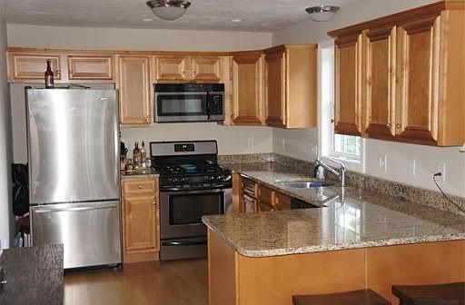 Just reduced for quick sale! 3 year young end unit townhouse with a 2 car garage! Georgeous kitchen with granite countertops-recessed lights-ss appliances & hardwood,dining room with bay window-hardwood floor and a slider leading to the deck,1st floor laundry,1.5 baths with tile and granite countertops,spacious livingroom with hardwood,2nd fl has 2 bedrooms and an office/sitting area,mbedroom has cath ceiling and a 3rd floor loft. central a/c. Great commuter location! Very well built complex!!
