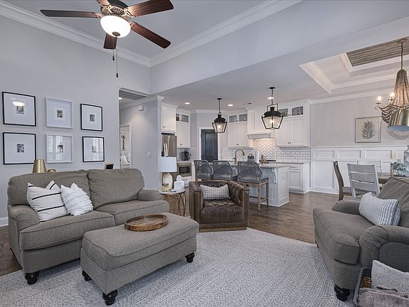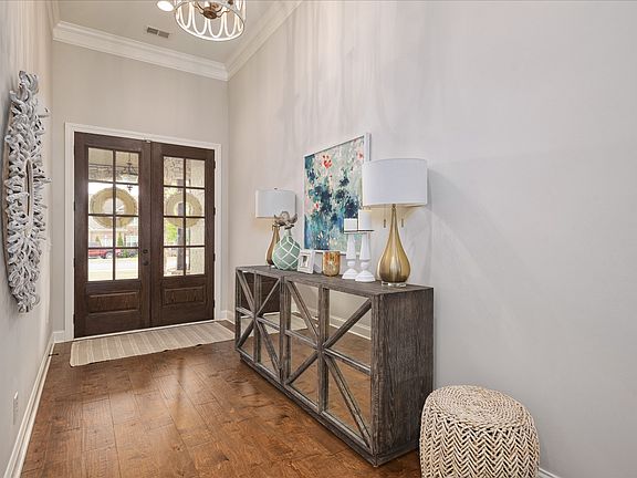 Nestled in the highly sought-after neighborhood of Farmington Woods, this stunning Stewart Knowles Construction home is an absolute must-see! The first floor boasts an open concept living area with a beautiful stone fireplace, wainscoting, wood inlay ceiling in the dining area, and custom white cabinetry with high-end appliances in the kitchen. The primary suite features a walk-in closet and stunning bathroom with a soaker tub and glass shower, perfect for unwinding after a long day. Upstairs, you'll find the fourth bedroom along with a spacious bonus room. The covered back patio with a retractable awning offers the perfect outdoor space for relaxation. Large evergreen trees line the backyard and offer excellent privacy. This home is the perfect combination of beauty & functionality.