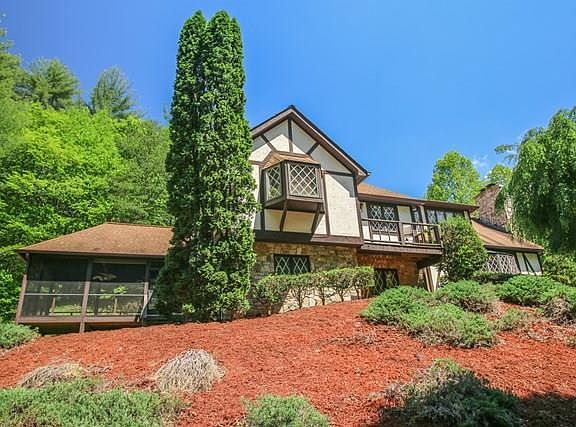 English styled Mountain Manor Home located on gorgeous 4+/-Acres! Tudor Style Home Perfect for large Family, 4Bed/3.5 Baths w/ Full Basement Plus an attached 2 car Garage and end of road Privacy. Home has approx 5,000sq ft. Extra large master suite with marble flooring. The kitchen has upgraded stainless appliances & double oven. The living room has a beautiful masonry gas fireplace. Enjoy relaxing on the 800 s.f. large screened in back porch. There is tons of space for family gatherings and reunions. Landscaping compliments the English styled surrounding. Cross Creek is very nice neighborhood on quiet end of road setting near the National Forest, Streams and Waterfalls.