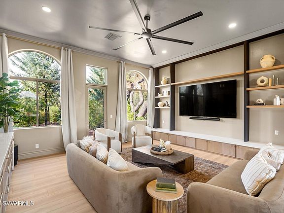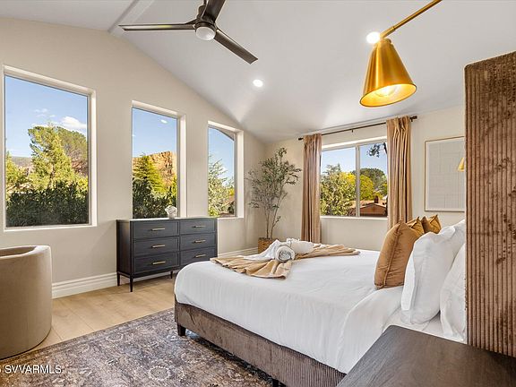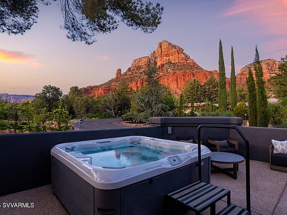 A shining new opportunity awaits in the center of Chapel Hills - Welcome to ''The Altaire'', a completely reimagined 5 bed/3 bath, 3400 sq ft professionally designed and curated masterpiece perched on a third-acre hill, with immediate access to Chapel of the Holy Cross and Mystic Trailhead. Remodeled and reborn with contemporary design, luxurious furnishings, a showstopping kitchen/family/living room combination, and family-engaging outdoor amenities with bountiful views of Sedona's iconic red rocks. With $240,000+ in projected rental income (see rental analysis), this home offers excellent investment potential. Run, don't walk - The Altaire won't be on the market long! Crossing through the expansive front entry door and into the foyer, you're met with a perfectly framed window view of a bespoke red rock water feature. Connect with everyone in the all-encompassing and open living, kitchen, and dining roomadorned with contemporary furnishings, an extensive coffee bar, gas fireplace, and abundant sunlight. Immerse yourself in the custom entertainment center with a 100" smart TV and Sonos sound system.