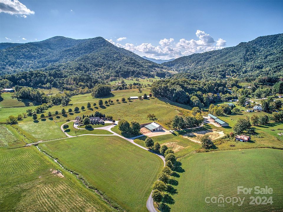 Tucked in a pristine valley in the Blue Ridge Mountains of Western NC you will find this equestrian estate. Privacy and serenity abound in sought after Bethel (Waynesville) just moments to historic Main Street Waynesville. This offering features 19 acres+/- with an additional 24 acres totaling 43+/- available acres. A six stall Morton barn, completely wi-fi accessible for stall cameras, will impress you with its two attached 16X72ft garages, one which is heated. On the 43+/- acre tract there are 8 separate horse pastures with non-barbed wire fencing and in ground watering systems. A one-acre irrigated garden spot along with one of two creeks on property full of trout makes living off the land a reality. Two more Morton buildings on the 43 acres of property. The Main House is immaculate and expansive including a 3-car garage and three levels of living space. A Stand-alone building beside main house with fireplace can be an entertainment space, fitness center, etc.