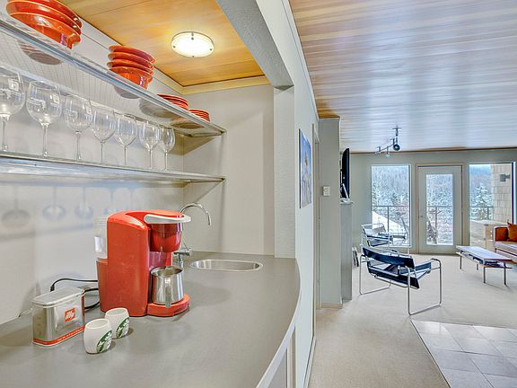 Rare opportunity to acquire a beautifully remodeled 2 bedroom, 2 bathroom Schweitzer Creek condo. Ski in--just ski down the groomed Overnighter Ski Trail directly to the condo; to ski out--just walk the short jaunt up Stella Lane to ski out on the same trail. Inside this modern remodel you'll find clean lines and high-end touches, such as custom clear-fir cabinets and tongue-and-groove ceilings, granite countertops, travertine kitchen tiles, and beautiful slate flooring in the bathrooms. The kitchen is completely outfitted with luxury Gaggenau and Miele appliances, including an under-cabinet 2-drawer refrigerator, concealed dishwasher, convention oven, and smooth-top range.