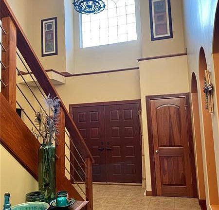 Stunning custom built home on private cul de sac. Breathtaking entry opens to spacious dining room accented with stylish arches leading you to the beautiful gourmet kitchen showcasing a custom ceramic tile backsplash, stainless steel appliances, convenient kitchen bar and cozy breakfast nook. First floor also boasts living room with gas fireplace, large laundry/utility room, den/office, custom tiled 1/2 bath and exquisite master suite. Second floor offers views of both the open entry and living area in the rear of the home and has two large bedrooms and full bath. Lower level offers a completely finished area featuring a 35x27 area complete with wet bar, kitchenette, bedroom and beautiful full bath with ceramic tile shower. The list of attributes continues outside with meticulously maintained landscaping with waterfall, concrete drive, storage shed and private concrete patio overlooking peaceful fields and woods.