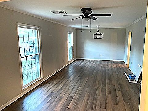 Just reduced! Single story brick home. Front porch. Four bedrooms. Brick fireplace. House on large corner lot.Shaded patio and storage building with fenced yard out back. Updated kitchen and bathrooms. New flooring and fresh neutral paint throughout.