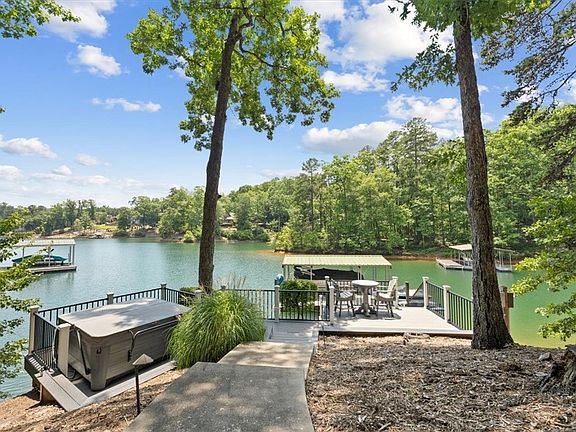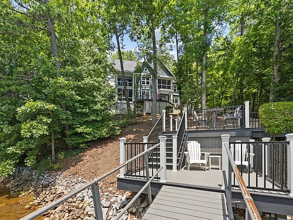 Welcome to your dream home! Nestled on over an acre of lush land with a gentle slope leading to deep, pristine waters, this stunning residence offers unparalleled lakeside living. Located in a prestigious gated community, this home combines luxury, comfort, and convenience in one exceptional package. The home features architectural elegance with a magnificent two-story stacked stone fireplace as the centerpiece of the living area, creating a warm and inviting ambiance. Heart pine flooring flows throughout most of the main level, adding rustic charm and timeless beauty. The kitchen is a chef's delight, featuring beautiful quartz countertops, a Viking gas range, a center island, modern appliances, and a large pantry. The main level also features a sunroom, with direct access to the lake, which is equipped with a wet bar offering an ideal space for entertaining guests or enjoying a quiet evening. The luxurious primary suite provides a peaceful retreat with a private screened porch. The primary bath is a spa-like haven, complete with a large tile shower, dual vanity, soaking tub, and a private staircase leading directly to the lake, ensuring ultimate privacy and convenience. Additional bedrooms are spacious and well-appointed, each with unique access to private outdoor areas. The detached carriage house garage provides an additional guest suite, perfect for hosting visitors or offering a private space for extended family. This suite includes a cozy living area, bedroom, and bathroom, ensuring your guests have a comfortable and private stay. At the water's edge, a hot tub provides a perfect spot for relaxation and soaking in the serene surroundings. There are multiple decks and a covered dock with a lift, two jet ski ports, and a stow-and-go rack for your kayak. Home is equipped with a state-of-the-art geothermal system, offering energy efficiency and sustainable living. Don't miss the basement area (outside entrance only) perfect for a workshop or hobby room. This home is more than just a residence; it’s a lifestyle. Whether you’re lounging by the water, entertaining guests, or simply relaxing in the tranquility of your surroundings, this luxury waterfront home on Lake Keowee offers everything you could desire. Don’t miss the opportunity to own this exceptional property. Contact us today to schedule a private showing and experience the elegance and serenity of lakeside living at its finest. Many recent updates have been made. Boat, Water Toys, and some furnishings are available for sale. Contact agent for info.