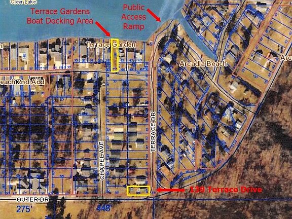 Catch of the day! Get on Clear Lake for little money...this year round cottage is part of Terrace Garden Association Inc. with a rotational community dock. This home is also located just down the road from the public access ramp. Nice corner lot with a detached one car garage, deck and fire pit. The living room is open to the kitchen. All appliances are included. There is an enclosed porch at the front of this home. Upstairs is one private bedroom, a large landing used as a 2nd bedroom, a mechanical room and a full bathroom. Immediate possession is available. Start enjoying lake-life now!