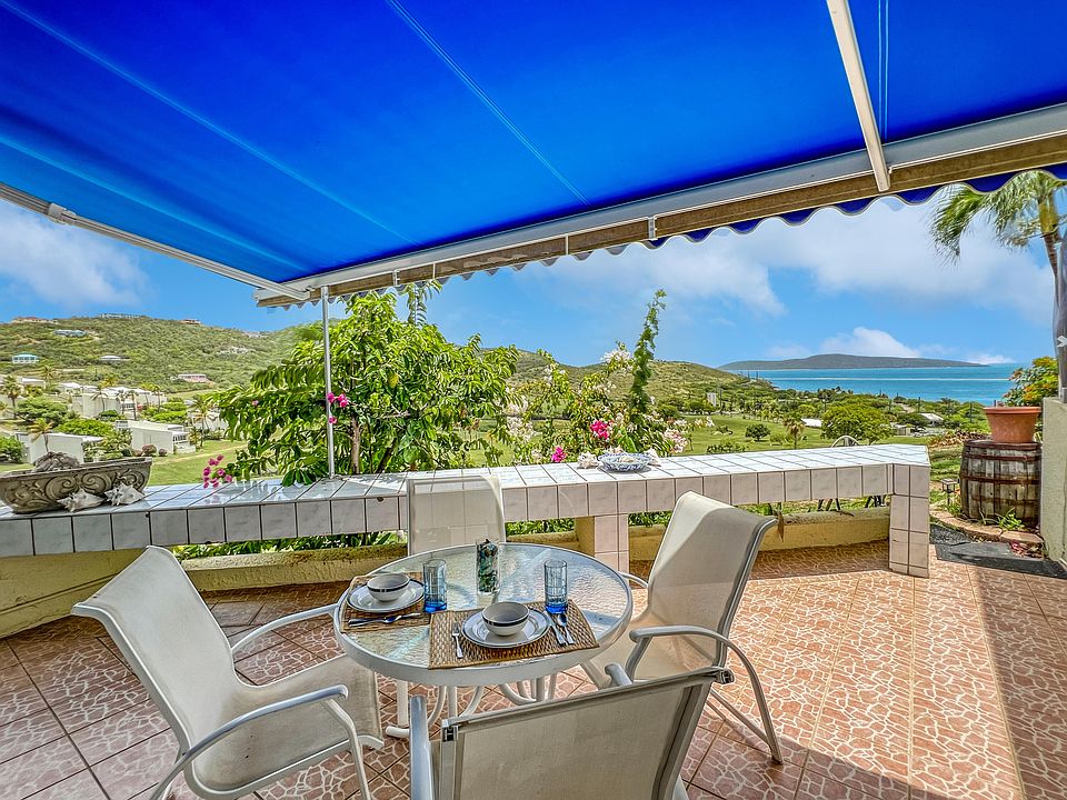 Looking for a one bedroom condo with a fantastic view? Welcome to Southwing! This unit has an unobstructed view of the Caribbean Sea, Buck Island, & the golf course. The large awning over part of the sea view patio creates a shaded space for outdoor living and leaves room for sunbathing. There's also a sunny patio off the kitchen with an outdoor shower. The many details include four tropical murals by Isabel Picard, a colorful mural in the upstairs bedroom by Cynthia Male, & a glazed hand-painted sink in the upstairs bathroom. Amenities include a large pool with common area, golf course, a frisbee golf course, tennis & pickle ball courts, a pro-shop, a sandy beach, an on-site office, & a gated entrance. Popular Duggan's Reef Restaurant is right across the road!