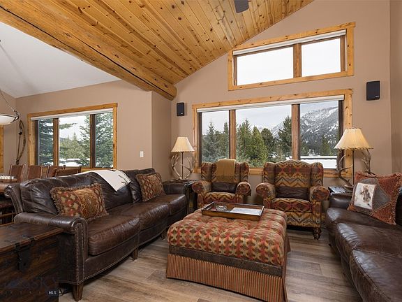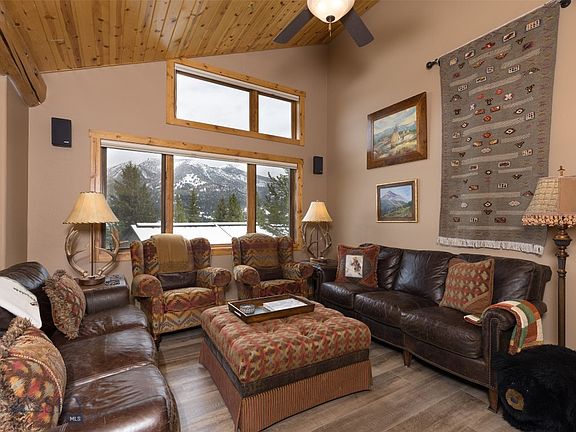 This meticulously cared for 3-level, 4-bedroom condo is being offered fully furnished/turnkey! Enjoy spectacular mountain views from the private location atop the lovely neighborhood located in the Big Sky meadow. In addition to being tastefully furnished, there have been significant upgrades made to this condo including custom hard-wood floors in the living room, granite counter tops, propane range/stove, custom cabinetry, remodeled bathrooms, and a new cold roof installed in 2023 to name a few. The main level great room is perfect for entertaining, with an open floor plan, cathedral ceiling and access to the expanded outdoor deck. The lower-level bonus room is a second living room with plenty of room for large groups, and an abundance of storage space. Located just minutes from the amenities of Town Center including shops and restaurants, Nordic skiing at Lone Mountain Ranch, fly fishing and white-water rafting on the Gallatin River and skiing at the Big Sky Resort, this is a property you won't want to miss.