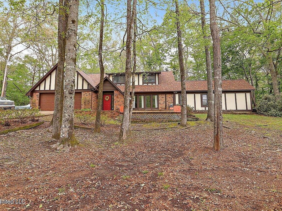 This Tudor-style home in the city offers a tranquil country-style living experience. It sits on a private cul-de-sac with over two acres of wooded land, making it a perfect fit for a growing family. The property is well-maintained and is part of the Clinton Public School District in the City of Clinton. The lower level features a welcoming entryway with two coat closets leading to a spacious formal dining area ideal for hosting large gatherings. The cozy family room comes with a fireplace, ample built-ins, a drop-down screen, and a projector. Additionally, there is a laundry room with a mud sink, a half bath, and a two-car garage that offers plenty of storage space. The kitchen has granite countertops, stainless steel appliances, a desk area, glass front cabinets, and a breakfast bar that opens up to the den and the eating area. French doors lead from the eating area to a sunroom with a vaulted, wood-beamed ceiling, and views of the outdoor arbor, brick patio, decks, and a half bath.