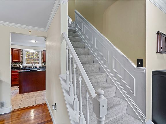 Discover this pristine, elegant two-story home nestled on a quiet street, offering the perfect blend of sophistication & comfort. Step inside to find Brazilian cherry hardwood floors, classic wainscoting, and crown molding throughout. The updated kitchen is a chef’s dream, featuring granite countertops, stainless steel appliances, cherry cabinetry with under-cabinet lighting, a stylish tile backsplash, and a convenient island. Enjoy abundant natural light in the cozy family room, complete with a gas fireplace for those relaxing evenings. Upstairs, you’ll find beautifully updated baths and spacious bedrooms. The finished basement is an entertainer’s paradise with a game room, wet bar, and walk-out access to a 20' x 13' covered patio. Above, a 21' x 14' deck connects the breakfast room and backyard, perfect for outdoor gatherings. Recent updates include a new roof (2023), patio and wall under deck (2021), furnace (2021), driveway (2019), and siding, soffit, and gutters (2011).