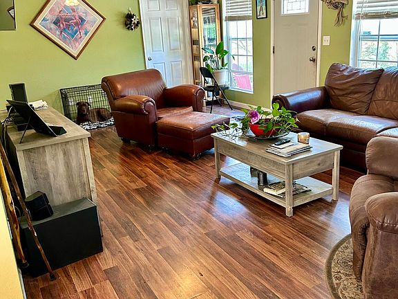 There is a 20 x 40 building in the back with continuous footing. Great place for storage and man cave and those projects. An overhead door makes it nice for a work space. Septic tank was pumped about a year ago and this home has public water. The crawl space has been encapsulated and the home was purchased with a VA loan and can easily pass those guidelines. Here you walk into the living room that connects to two bedrooms. The primary bedroom has a full bath with a bidet and a walk in closet. Through the living room is the kitchen bathroom & laundry area and a door that takes you to the back yard. Kitchen has an abundance of cabinets and all appliances stay including the washer & dryer. To the left of the living room are stairs to travel upstairs to a huge open space. Great for bedroom, playroom or office. So to wrap it up, this home has Mountain Views a yard to play in with peaceful surroundings yet town is moments away. The ideal place. Come check it out!