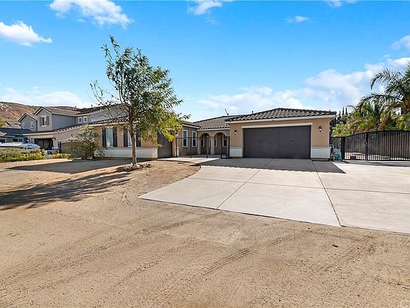 Check out this Norco Ridge Estates plan 1 built by Standard Pacific, offering 2748 sq ft, single story, 4 bedrooms, 2,5 bathrooms, gated courtyard, diamond set tile, formal living and dining room, dream kitchen with island, nook, granite counters, KitchenAid appliances including double oven, warming tray, 5 burner cooktop, microwave, family room with fireplace with concrete hearth, media niche wired for surround sound, master bedroom, 2 walk in closets, jetted tub, walk in shower with a bench, 3 additional bedrooms all with ceiling fans, large Aprox 1/2 acre lot, patio with full width patio cover, cross rail fenced horse area, covered pipe corrals aprox 24 ft x 45 ft, shed, Both sides of the house offers RV parking, expanded front driveway, culdesac location, near Ingalls Equestrian Event Center, best priced house in Norco Hills, offered at $779,900.