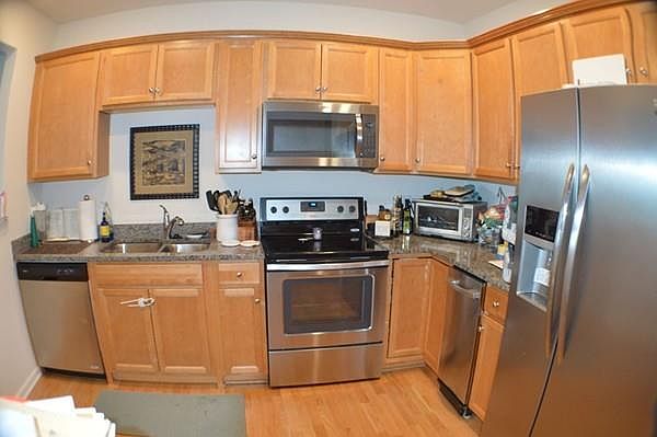 One bedroom condo with an eat-in kitchen, laundry room, and an extra room with door that can be used as a den or office. Living room opens out to a balcony with great view. Granite countertops, stainless steel appliances, wood floors, central air, and in-unit laundry. Located just 0.3 miles away from South Weymouth commuter rail, 2 miles from South Shore Hospital, and easy access to Route 3 and lots of stores and restaurants. Part of the Union Point community with its 1000 acres of open space for recreation and conservation and 10 million square feet of commercial space. Available June 20th, you must come see this!